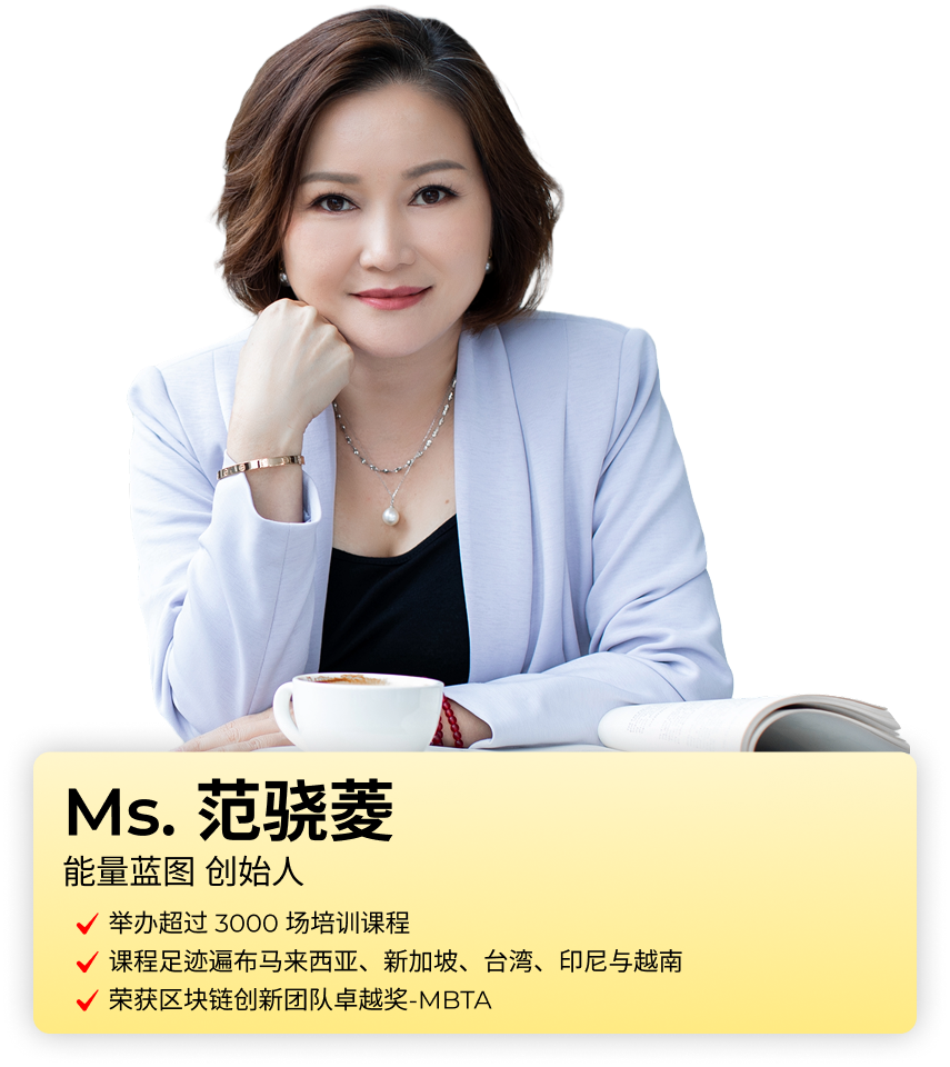 她曾举办超过 3000 场线上与线下课程,服务横跨马来西亚、新加坡、印尼、台湾等多个国家。她所创立的「能量蓝图」,已经帮助许多学员重新找到自己的方向与节奏。